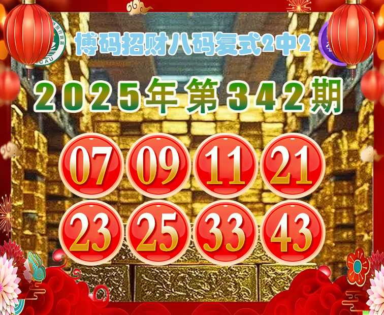 342期:〖博码招财〗 ♠️八码复式2中2♠️